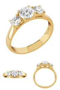 Uhkean upean Taivaanranta V-385 sormuksen 3-kivisen istutuksen timanttien yhteispaino on 1,20-1,30 ct, keskikiven koko on 0,67-0,73 ct.