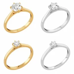 6-kyntiseen istutukseen sopii 0,16-1,10 ct timantti. Kuvassa ylhäällä 1,00 ct / M-354 ja 0,50 ct / M-353, alhaalla 0,30 ct / M-351 ja 0,16 ct / M-350.