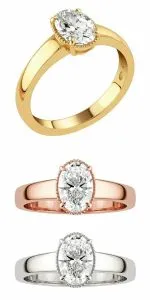 Sormuksissa sädehtivät 1.00ct ovaalihiontaiset timantit.