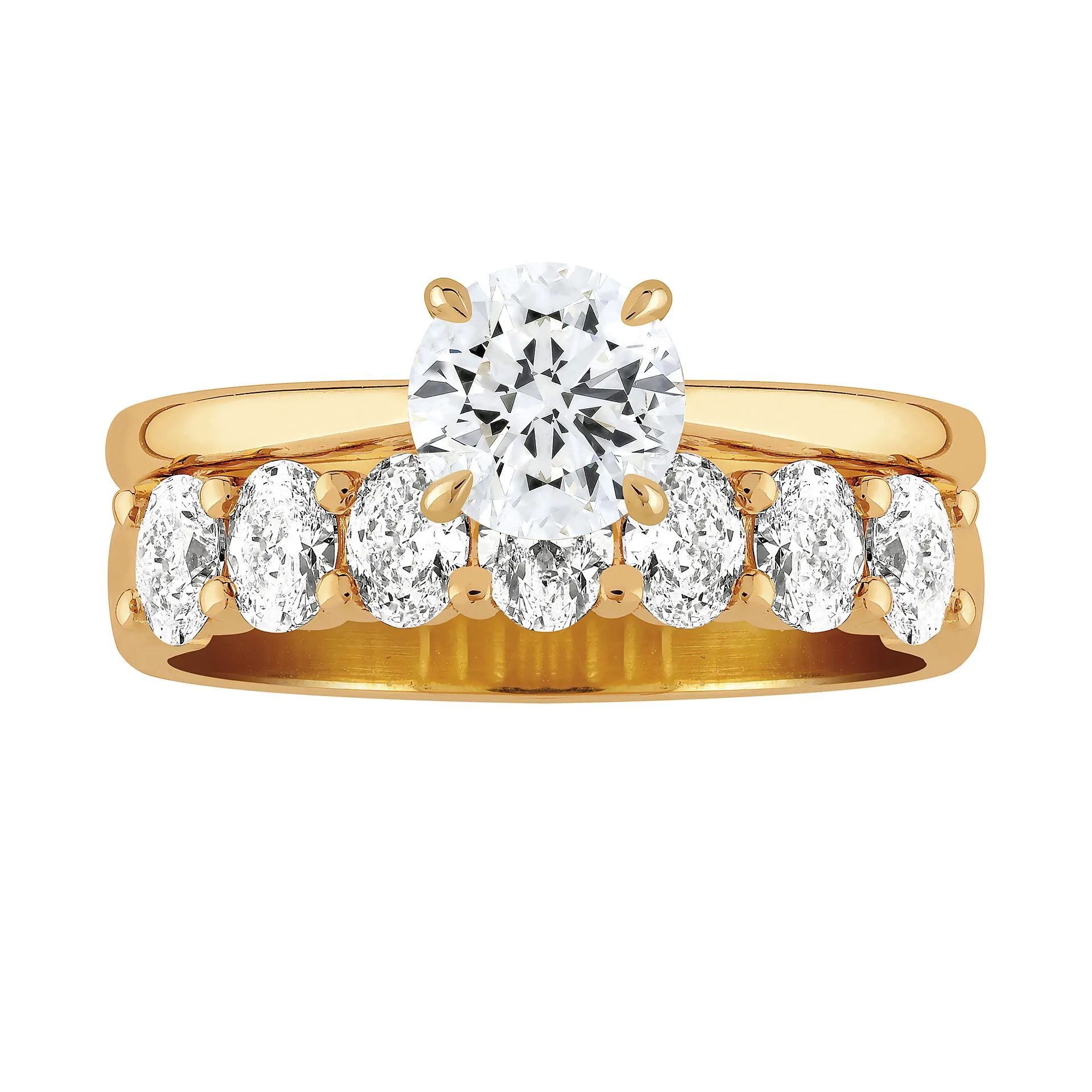 1,00ct briljantti + yht. 1,00 ct ovaalihiontaiset