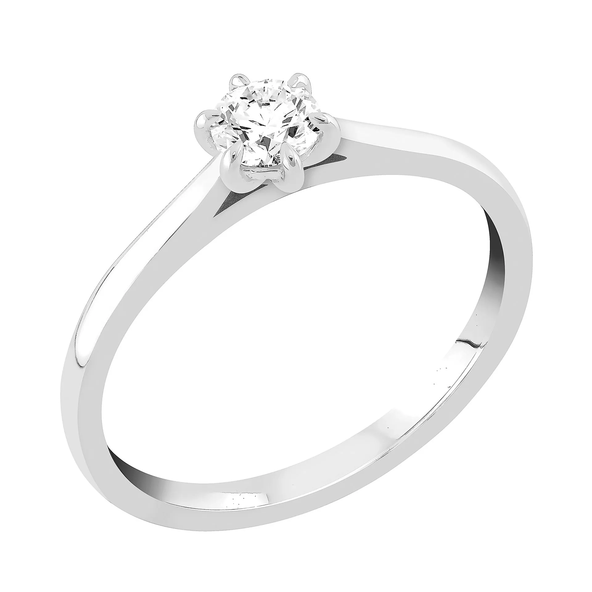 Onnenlähde M-351w sormuksen 6-kyntiseen istutukseen sopii 0,23-0,35 ct timantti (kuvassa 0,30 ct). Siron ja matalan istutuksen sovitus runkoon on tehty siten, että vierelle sopii toinen sormus, esim. sileä kihla tai rivisormus.
