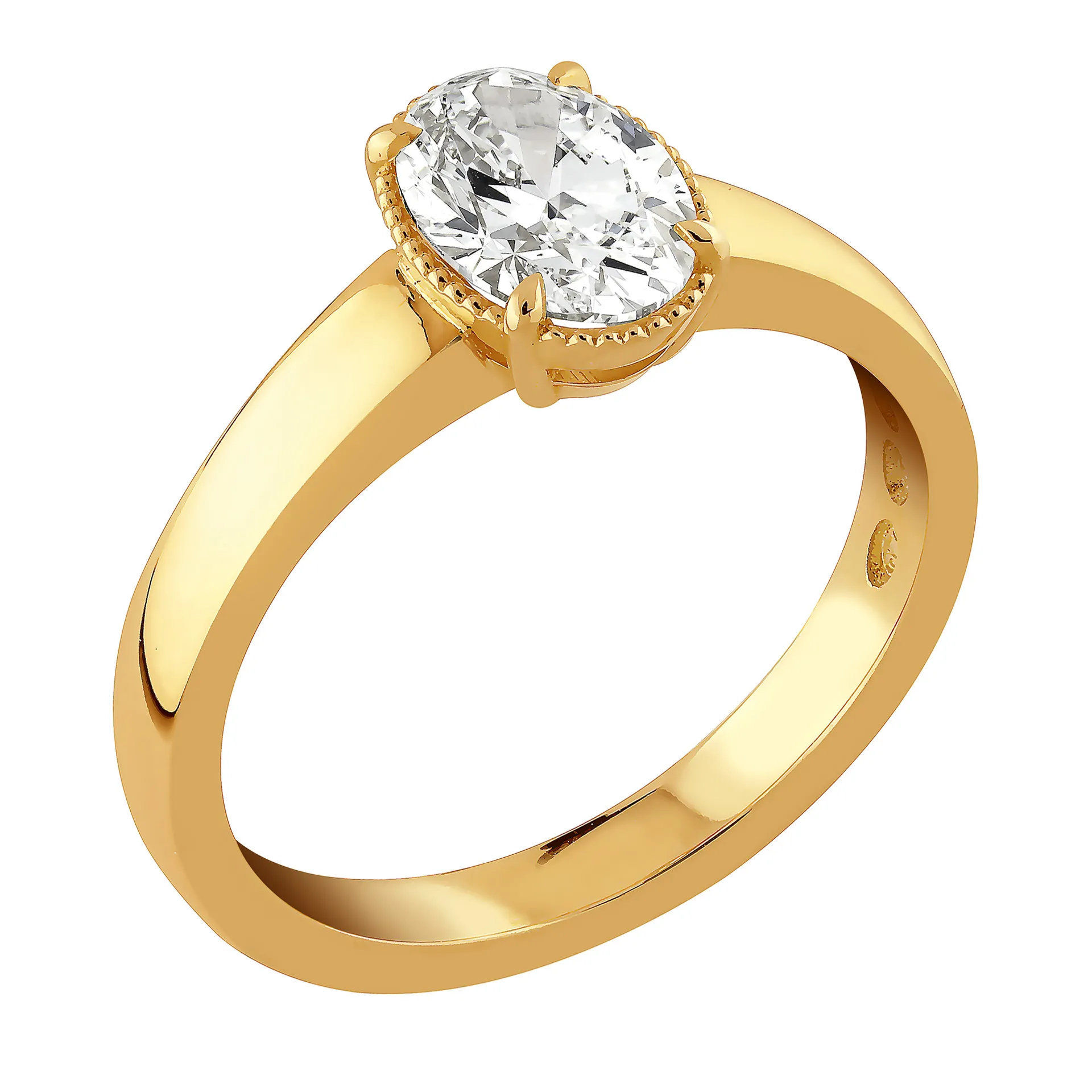 Sormuksessa sädehtii 1.00ct ovaalihiontainen timantti.