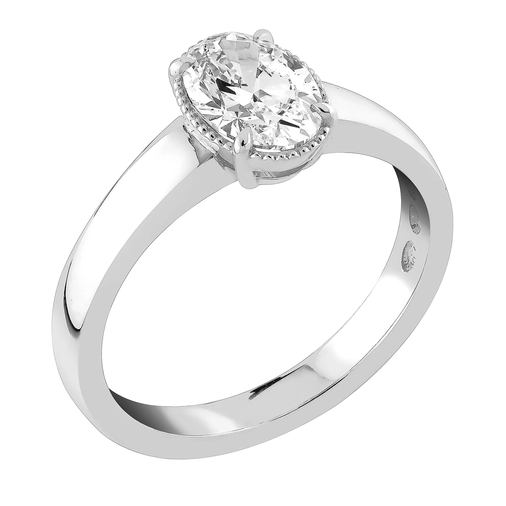 Sormuksessa sädehtii 1.00ct ovaalihiontainen timantti.