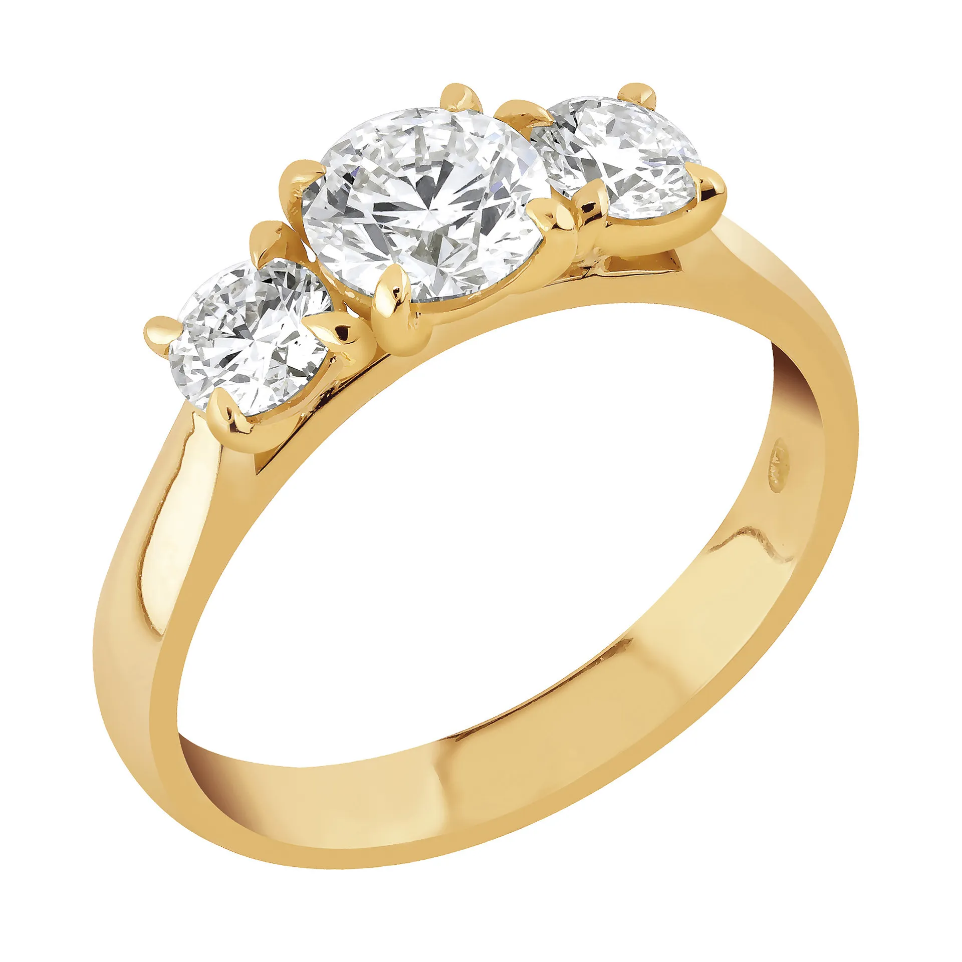 Upean Taivaanranta V-385k sormuksen 3-kivisen istutuksen timanttien yhteispaino on 1,20-1,30 ct, keskikiven koko on 0,67-0,73 ct.