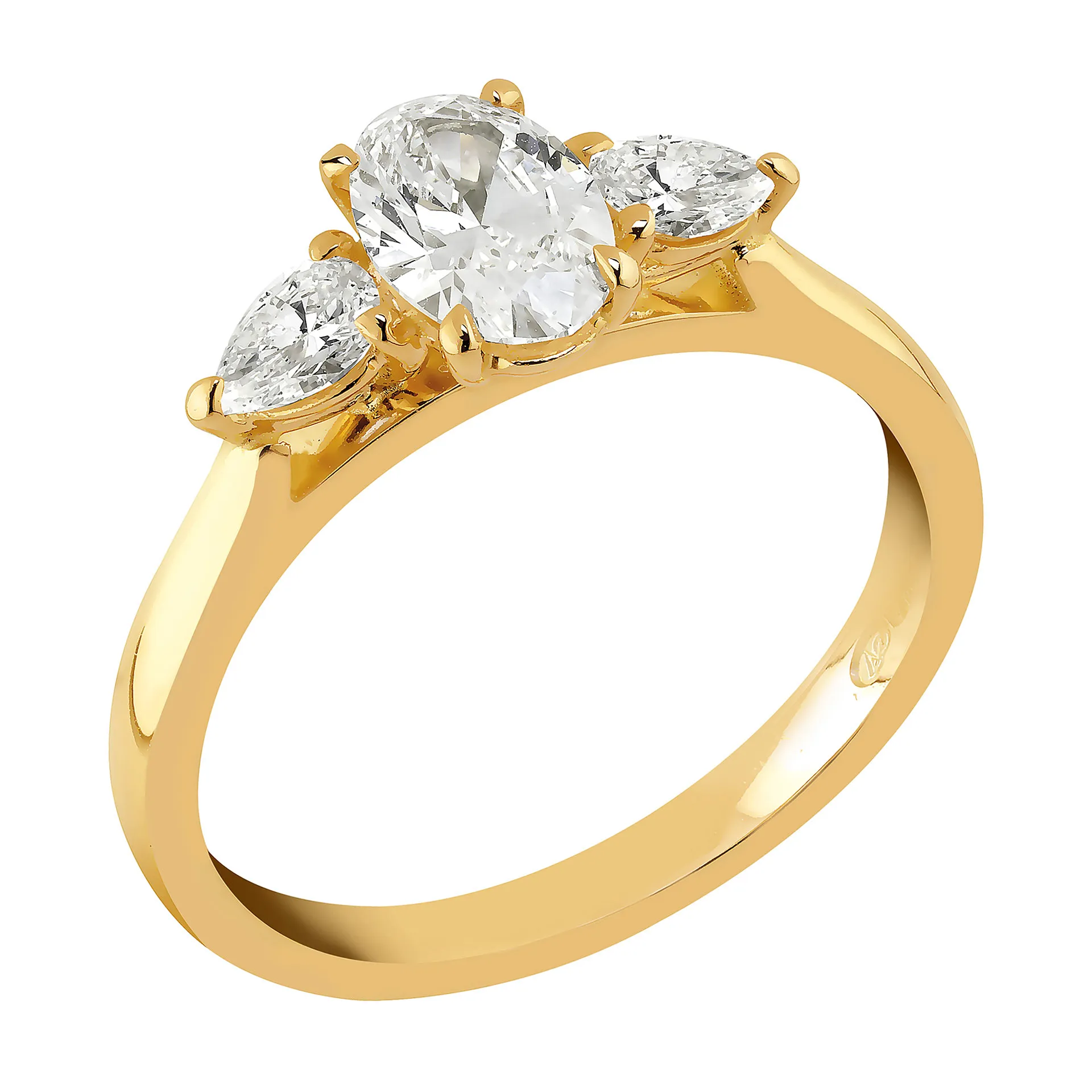 3-kivisessä Yöpilvi V-495K -sormuksessa keskikivenä on ovaalihiontainen 0,70 ct timantti sivuillaan pisaran muotoiset timantit.